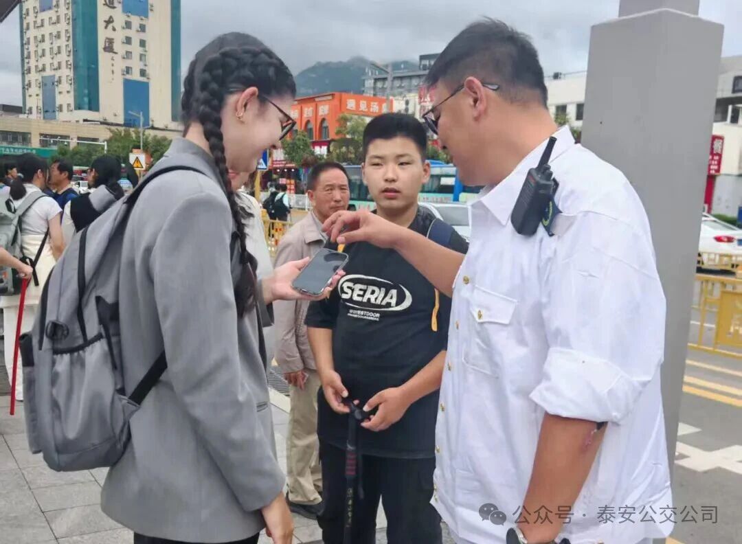 國(guó)慶假期的泰山火車站,人流熙攘間滿是出行的活力。10月3日上午10時(shí)許,泰安公交第二分公司副經(jīng)理尹燕群正堅(jiān)守在執(zhí)勤崗位上,疏導(dǎo)客流、解答疑問(wèn)、維護(hù)秩序。就在這時(shí),一位在公交站牌旁面露難色的外籍游客,引起了他的注意。