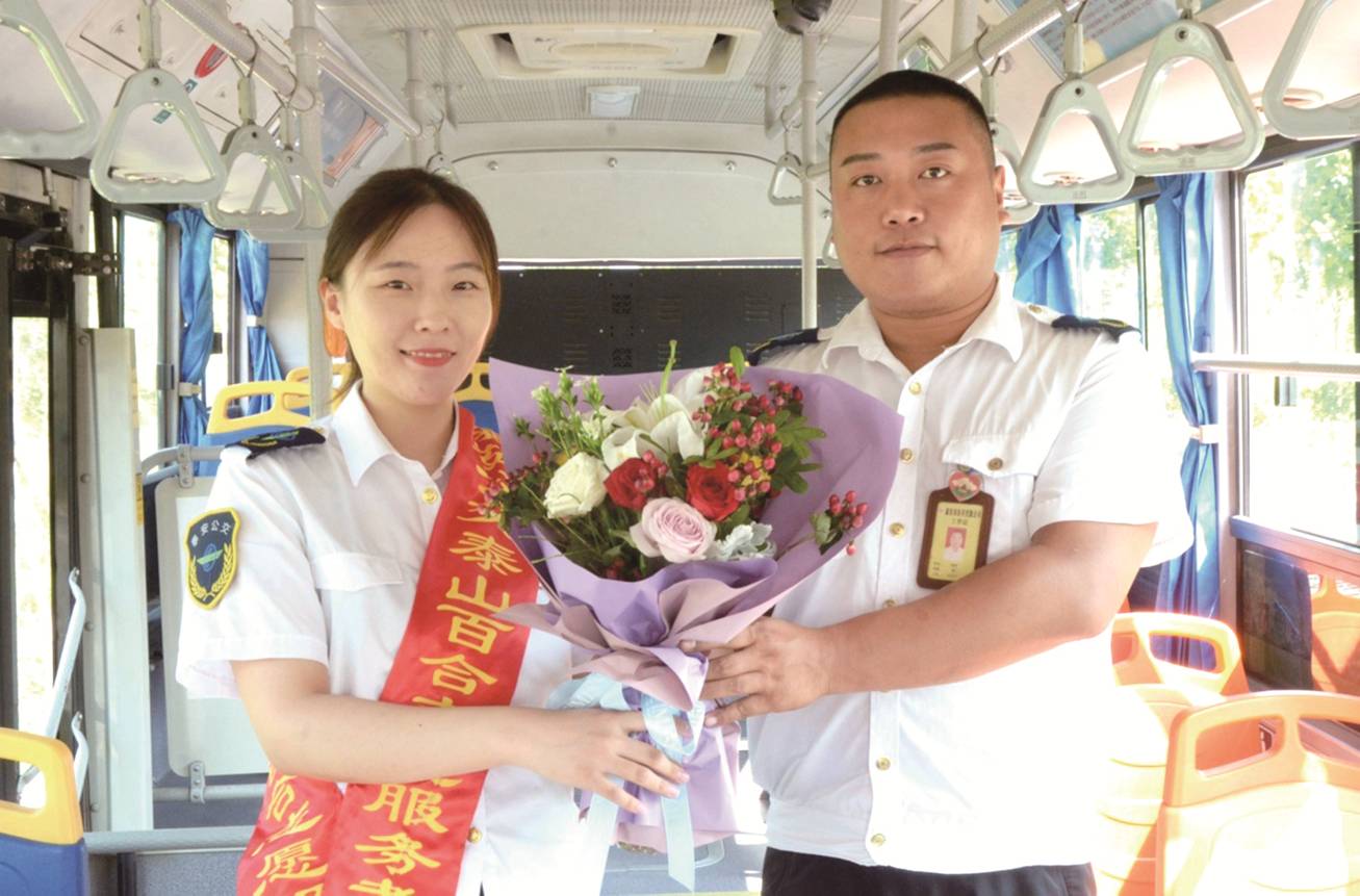 7月20日,公司“泰山百合”志愿者為四分公司17路駕駛員趙剛送上百合花一束,表彰他拾金不昧,助人為樂(lè)的精神。