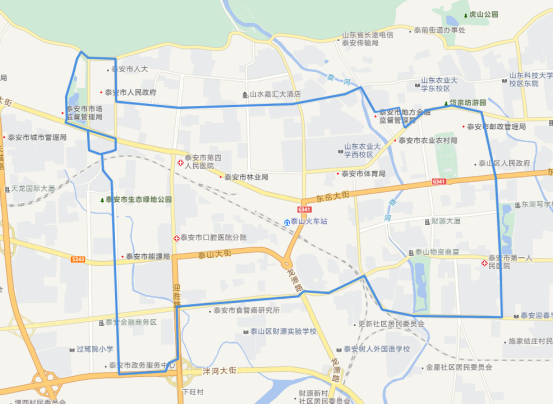 優(yōu)化調(diào)整后14路首末站變?yōu)閷汖埑鞘袕V場和泰安老街公交停車場。運行路線為寶龍城市廣場—環(huán)山路—普照寺路—岱宗大街—龍?zhí)堵?mdash;泮河大街—堰堤北街—六郎街—梅山西路—泮河北街—泰安老街公交停車場。優(yōu)化調(diào)整后運行路線圖如下: